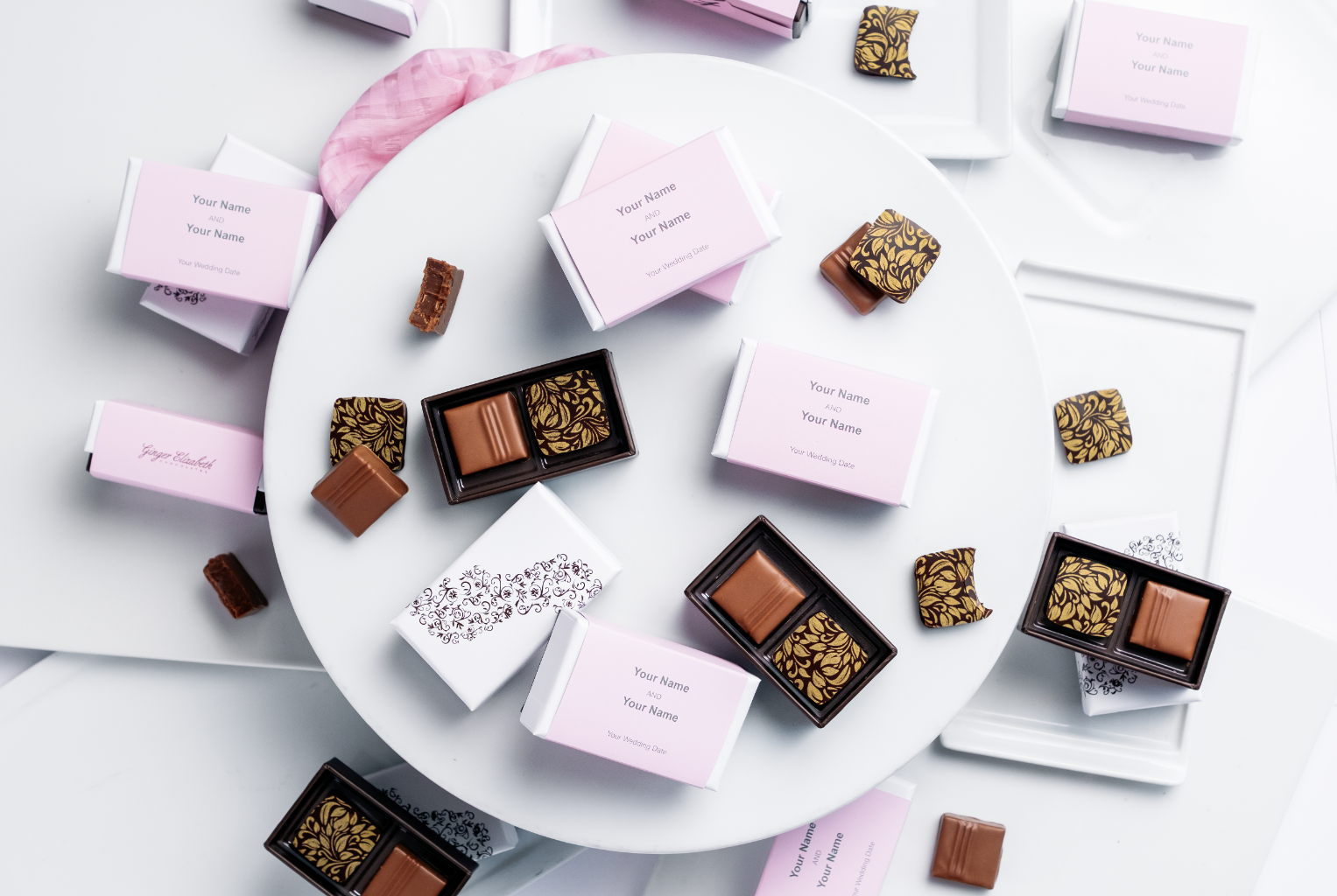 Celebrate love with personalized chocolate boxes. Design your wedding favors online and add a touch of elegance to your special day.